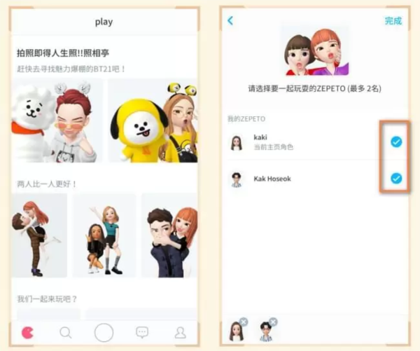 3、装扮完毕后,即可体验拍照功能;支持导出透明背景图片,便于与现实场景合成;你可以单人创作,也可通过应用随机推荐或代码搜索添加好友,进行多人合影。