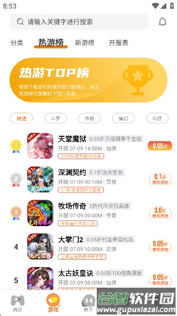界面设计简洁,操作流程清晰,新用户也能快速掌握使用方法;平台内容保持实时更新,新游戏上线和开服信息会同步推送,让玩家及时获取最新动态;排行榜单从多个维度呈现,例如“热游榜”基于下载量与热度生成,帮助用户发现正在流行的游戏。