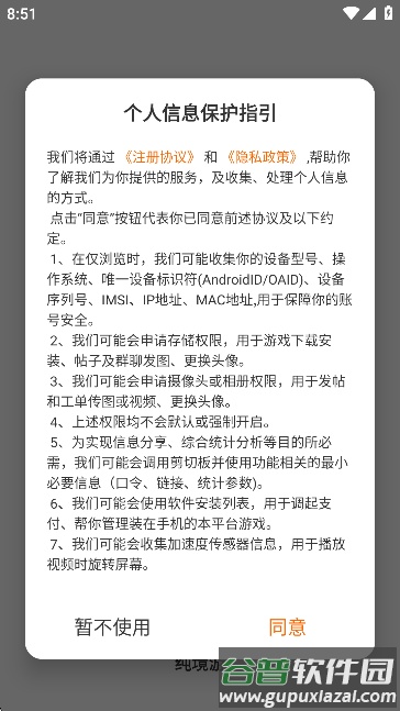 2、打开后需要同意用户协议和隐私政策;