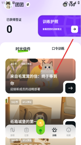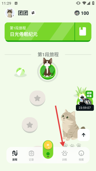 1、打开应用进入首页,点击底部【训练】标签页切换到训练界面。