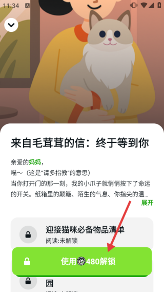 3、如果信件被锁定,点击【使用480解锁】即可消耗相应道具进行阅读。