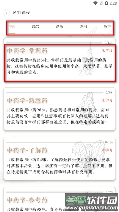- 新增学习数据:艾灸、八纲辨证、舌诊、脉诊、方剂学、中成药学;