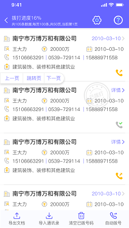 拨打任务管理:在软件内直接拨打商户电话;具备拨打进度统计与标记功能,支持数据导出至Excel,也可直接导入手机通讯录。