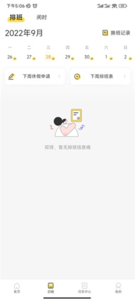 3、在日程板块中,可提交休假申请或查看个人排班表;