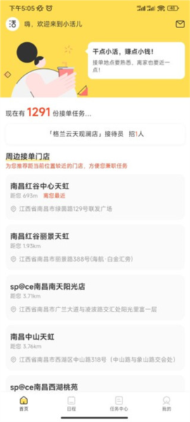 2、每个门店均包含多种任务,用户可根据自身情况选择接单;