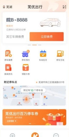 芜优出行 想停就停:实时显示车辆停车动态,支持一键完成缴费;
