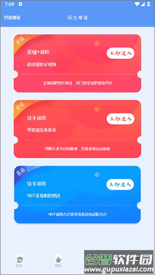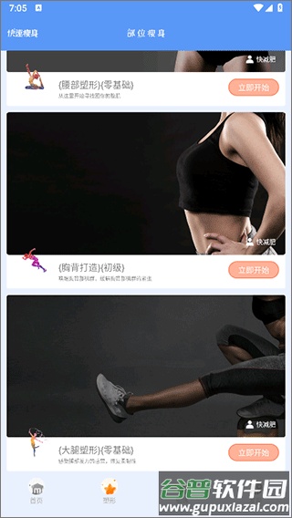 2、塑形栏目包含针对身体各部位的塑形指导视频,用户可以免费观看并跟随练习。