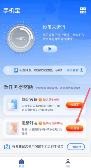 需要将手机设备绑定到网心云账号下进行统一管理;如果运行多台设备,可以在网心云应用中集中查看所有设备的收益与运行状况。