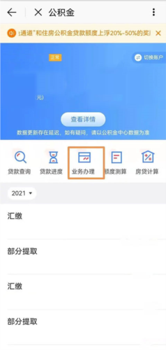 3、认证成功后进入公积金业务办理主页面;