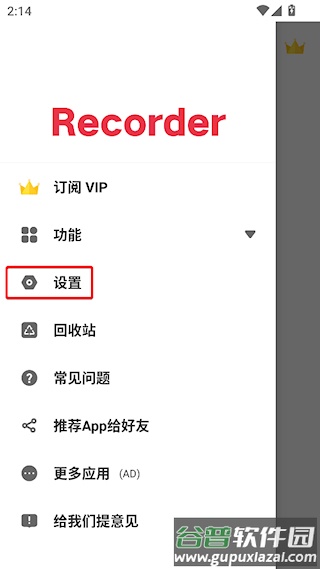2、进入设置或录音参数调整页面;