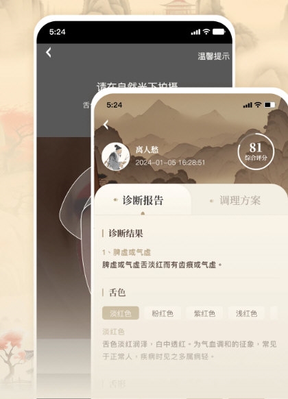 4. 通过AI舌诊功能,用户可以获取基于舌象分析得出的智能化健康评估报告。