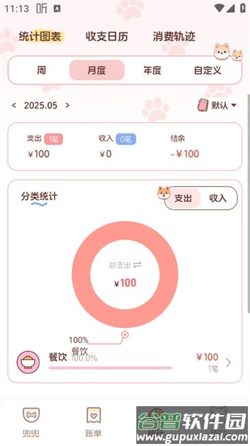 5、通过统计板块,能以图表形式更直观地了解消费分布;