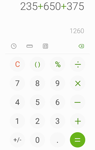 点击历史按钮可查看全部计算记录,轻触某条记录,其内容会自动填入显示区,便于修改或重新计算。
