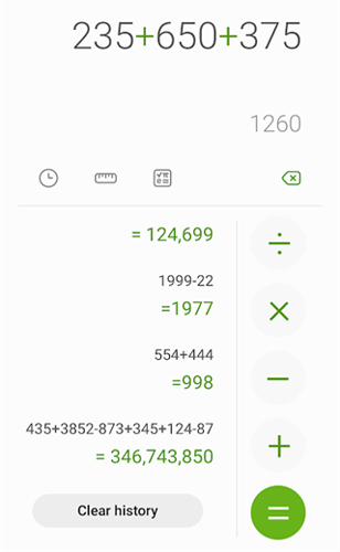 1、竖屏模式下按键布局宽大,模仿了实体计算器的键位设计,易于操作。所有计算记录都可随时回溯查看,这一设计颇为实用。