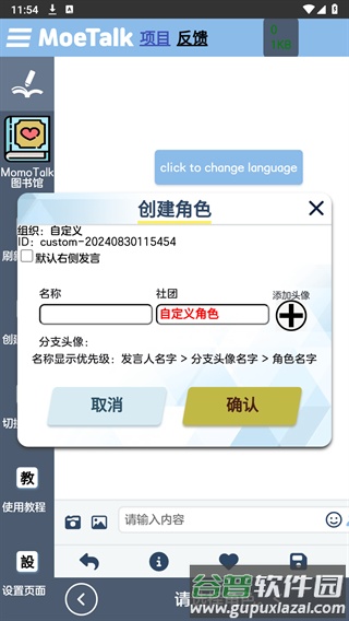 5、填写角色名称、上传头像、设置社团等信息,最后点击确定即可成功创建。