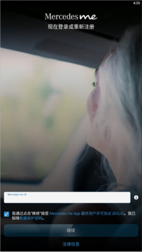 1、使用梅赛德斯奔驰应用程序需通过Mercedes me ID登录或完成新账号注册;
