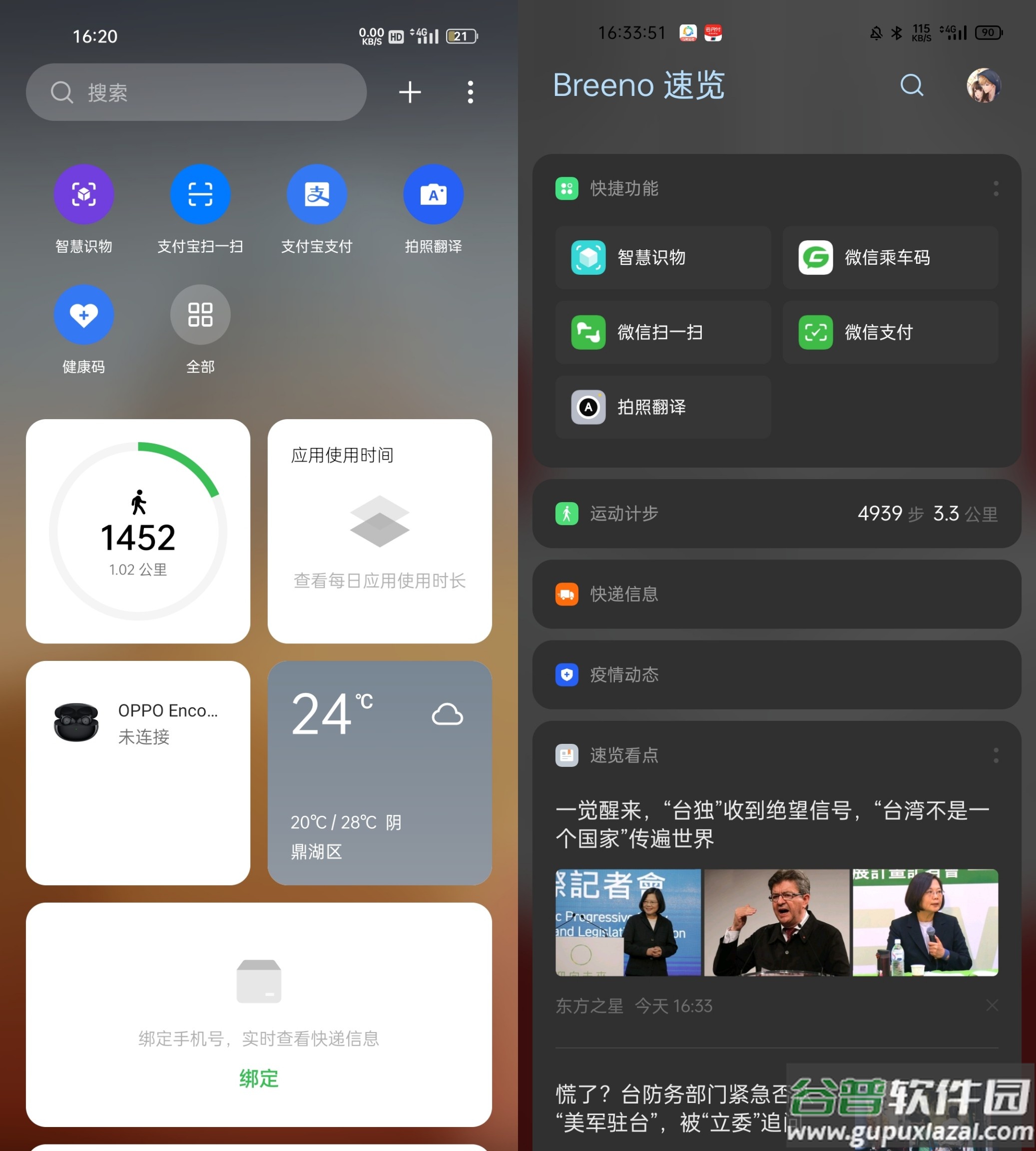 该功能位于屏幕左侧页面,桌面左滑即可唤出负一屏。这里集合了许多日常工具,例如快捷功能区提供了语音助手、文档扫描、移动支付等服务;运动计步帮助记录每日行走数据;物流信息栏在绑定手机号后,能直接显示包裹运输状态。