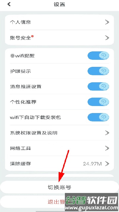 4、在设置中找到“切换账号”功能,点击后添加另一孩子的账号信息即可完成设置。