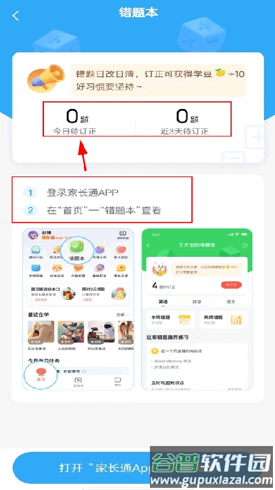 用户也可登录家长通应用,查看错题并完成订正过程。