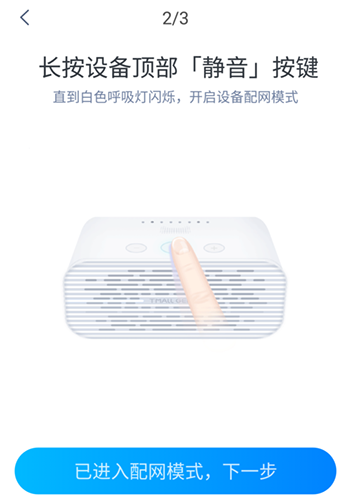 根据提示将设备切换到配网模式,然后点击下一步继续。