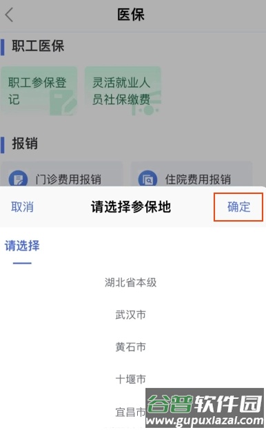 4、根据提示选择您当前的医保参保地区。