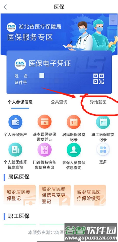 同样先进入应用内的“医保”板块,选择页面右上角的“异地就医”功能。