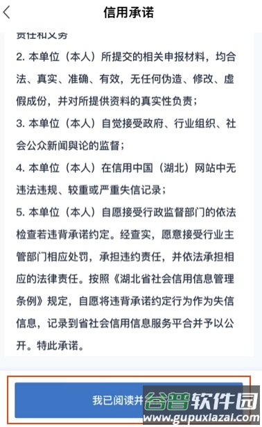 6、认真阅读信用承诺书全文,确认后点击“我已阅读并承诺”。