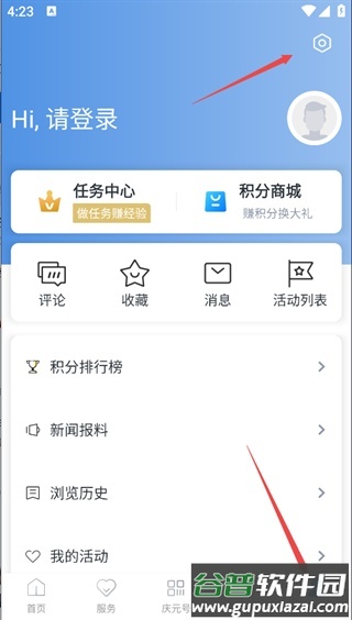 打开掌上庆元app,在首页点击我的页面;
