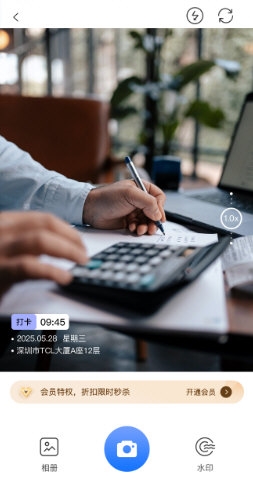 通过相机直接拍摄,一键即可获得带有水印的照片。