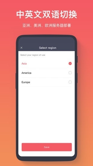 1、支持中英文双语切换,服务器覆盖亚洲、美洲、欧洲;