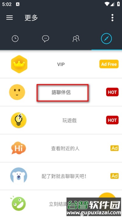 2、在主界面中找到并点击语聊伴侣入口。
