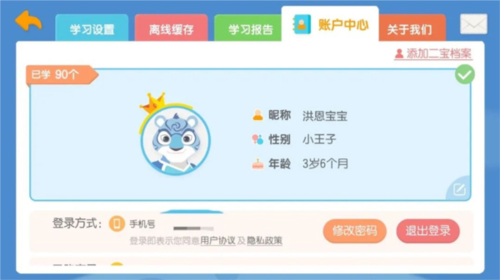 添加二宝档案后,登录应用时即可选择需要学习的角色。