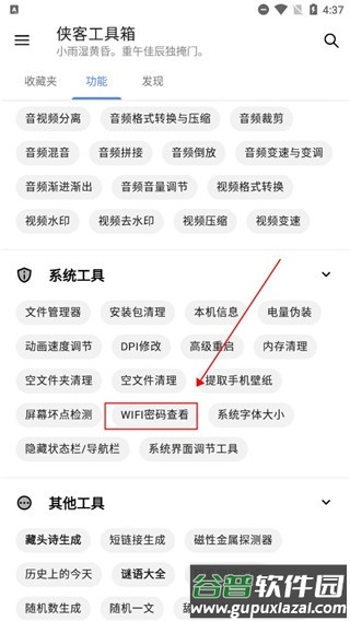 1、启动软件,在功能列表中找到需要使用的工具,例如系统工具中的WiFi密码查看。
