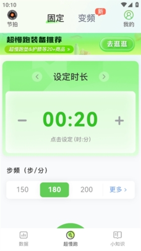每日设定一个小目标,设置锻炼时间后即可启动超慢跑计时,按时提醒。