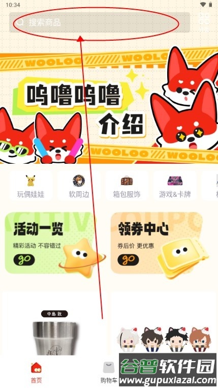 2、在搜索栏中输入你想寻找的商品名称或关键词;