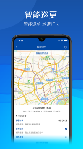 系统智能分配巡检任务,自动记录巡逻打卡信息;