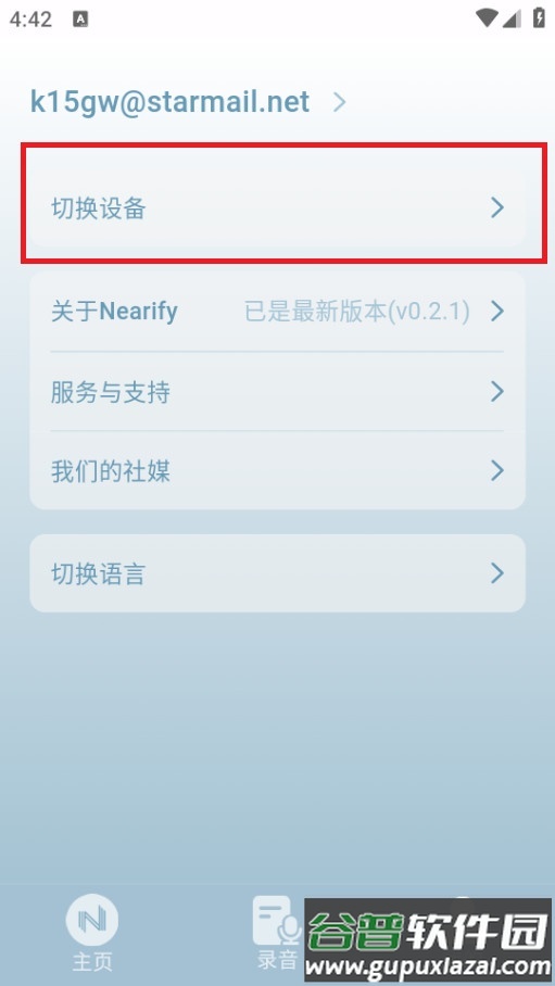 进入“我的”选项卡,点击页面中红框标注的“切换设备”按钮即可进行操作。