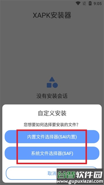 2、依据xapk安装包的存放位置,选择使用内置安装或系统文件安装。