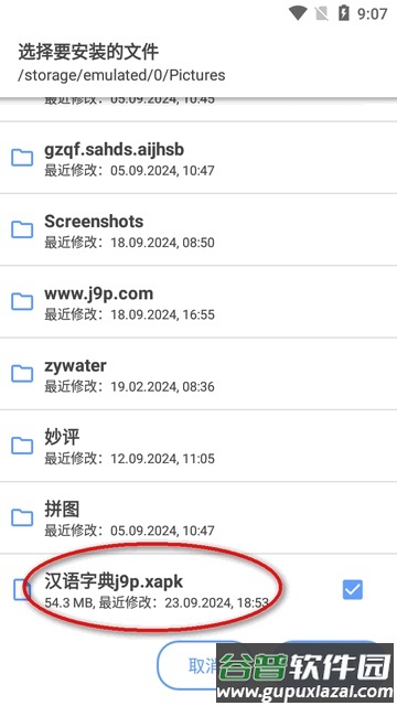 3、在手机文件目录中,找到并选中需要安装的xapk文件。
