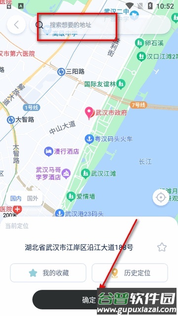 7、直接搜索目标地址,确认后定位便会立即生效。