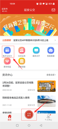 1、启动延安公交app,点击底部导航栏的【扫码乘车】。