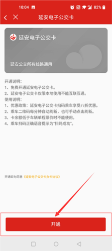 2、在跳转页面点击【开通】按钮,以开通延安电子公交卡功能。