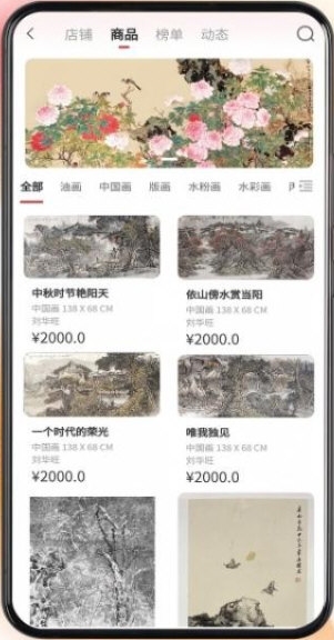 2、浏览时能切换不同商品专区,探索更多艺术品种类;