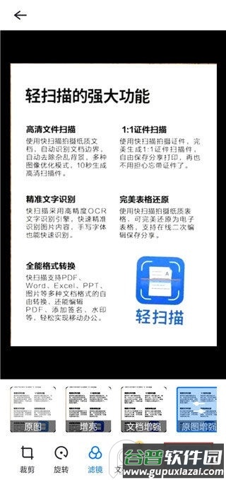 1、让手机具备扫描仪功能,实现文字识别与图像高清扫描,并带有智能优化处理。