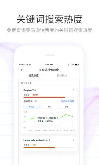 提供关键词搜索热度查询功能,帮助卖家免费了解特定词汇的买家搜索频率。
