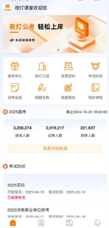 夜灯课堂由北京夜灯教育科技有限公司研发,是一款专注于公务员考试学习的移动应用。软件整合了历年真题与各类复习材料,用户可自由使用这些资源进行备考。它适应日常碎片化学习场景,助力用户稳步提升知识水平,让学习过程更简单高效。应用提供大量习题与模拟考试功能,支持多维度评估学习进展,从而针对薄弱环节加强练习,实现全面能力提升。