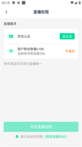 4、在弹出的功能选项中点击“开直播”,仔细阅读平台关于直播的资格要求与限制条款;若符合所有条件,点击申请开启直播权限,通过后即可开始直播。
