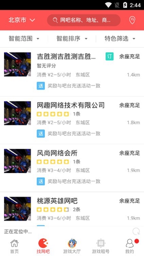 1、【查找】搜索周边网吧,查看详细的位置、环境与设备信息。