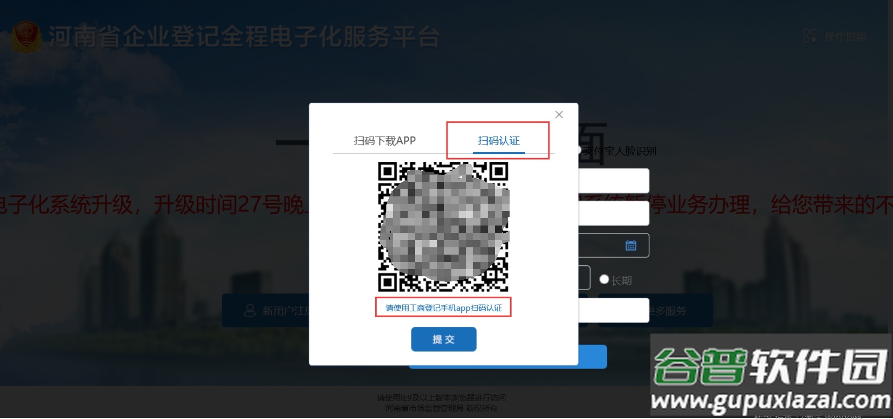 3. 选择“扫码认证”,并使用工商登记手机APP进行扫码;