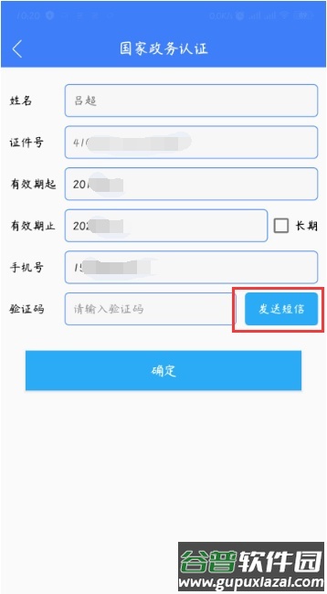 5. 点击“发送短信”获取验证码,输入验证码后点击“确定”;